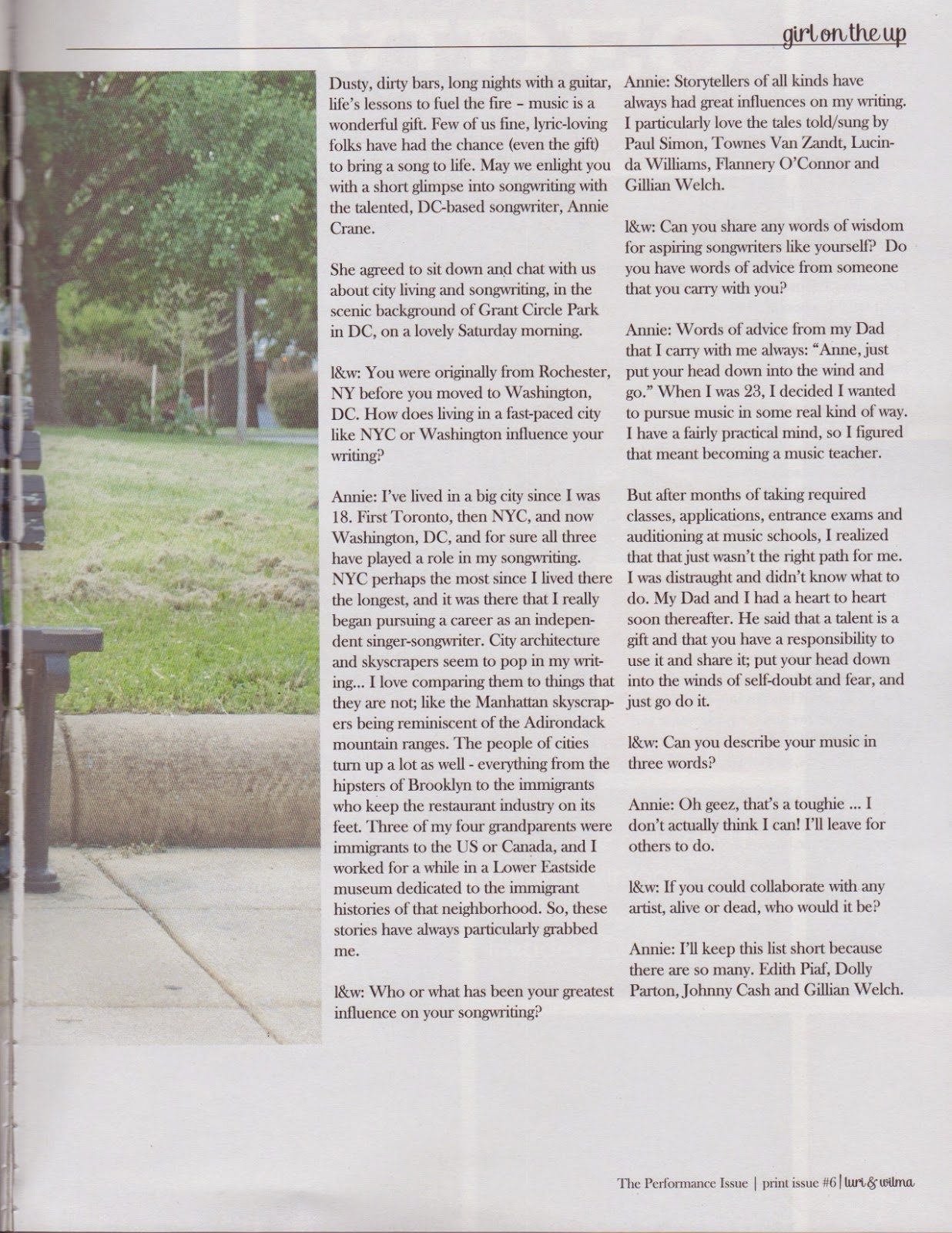 Luri & Wilma is a DC based, eco-friendly fashion and life-style blog and quarterly print magazine that dubs themselves "the smart magazine for smart ladies". I had a wonderful time working with Amber Paranick, the interviewer and author of the article I was featured in, and Charlie Heck, the Editor-in-Chief of this super cool, independently published print publication.